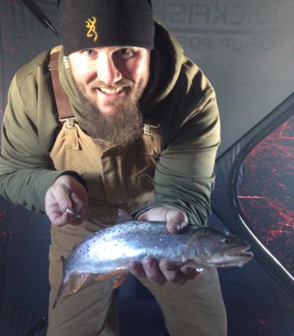 Meyers says, “Similar to anything I do in the outdoors, there is so much more going on than just fishing. You’re standing on a frozen lake for crying out loud! And if you’re cold, you’re miserable, but if you dress warm it’s some of the most fun you can have.”